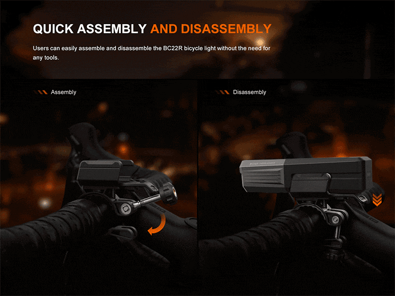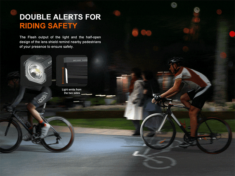 Fenix BC22Rは、最大1400ルーメンの明るさと最大156メートルの照射距離を実現した、ロードバイク向けの高性能USB充電式フロントライトです。カットオフファキュララインとハーフオープンレンズ設計により、歩行者の視界を妨げず、夜間走行の安全性を確保。エアロダイナミクスを考慮したマリンバイオニックデザインを採用し、風の抵抗を抑えたスリムな外観も魅力です。正方向・逆方向どちらの取付にも対応し、ユーザーの好みに合わせた柔軟なセッティングが可能。3400mAhバッテリーを内蔵し、USB Type-C充電に対応。バッテリー残量インジケーターやシンプルなワンスイッチ操作など、使い勝手と実用性を両立したロードライドに最適なモデルです。