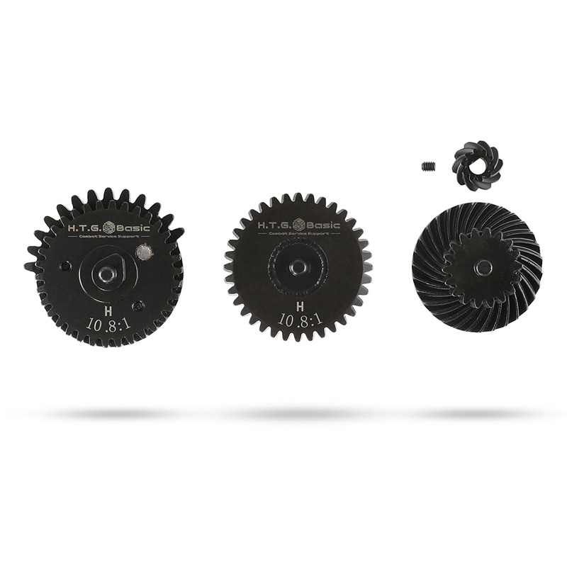 HTGベーシック スパイラル ヘリカルスチール ギアセット 10.8:1 "玄ギア" 電動ガン用 CNC削り出し シングルセクターギア SSGギア