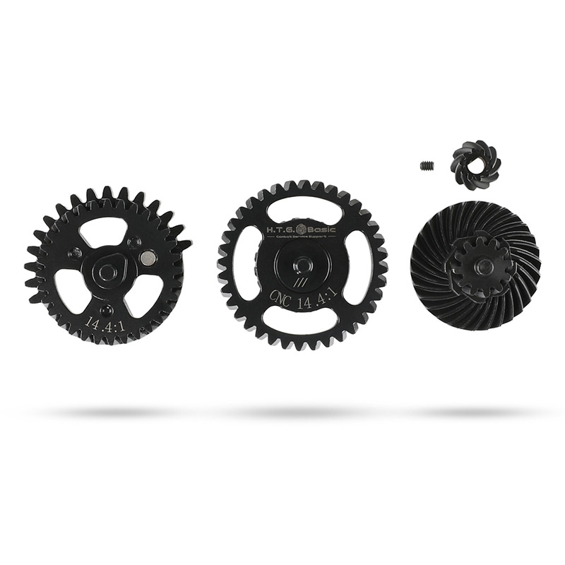 HTGベーシック スパイラル ヘリカルスチール ギアセット 14.4:1 "玄ギア" 電動ガン用 CNC削り出し シングルセクターギア SSGギア
