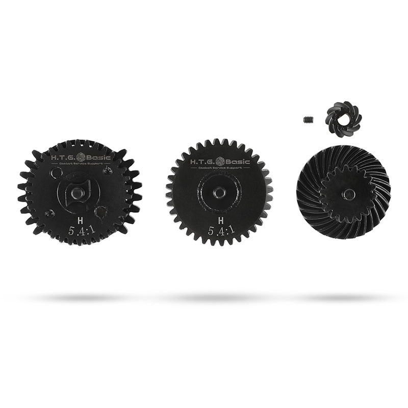 HTGベーシック スパイラル ヘリカルスチール ギアセット 5.4:1 "玄ギア" 電動ガン用 CNC削り出し デュアルセクターギア DSGギア