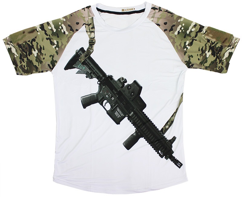 - Tシャツの前面にHK416がプリントされたオシャレなTシャツです。 H&KのHK416にEoTechのホロサイト、MAGPULのRVGにMCのツーポイントスリングが装備されたデザインです。 クッキリと鮮明にプリントされており、少し離れて見ると実際に銃を携行しているかのようなリアルな外観となっています。