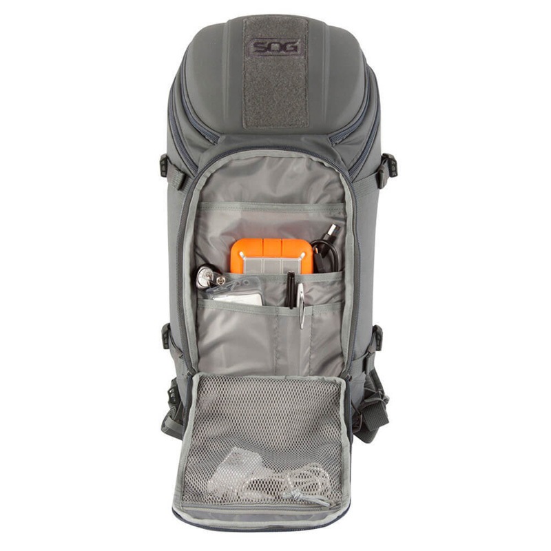 インナースリーブ付整理ポケット、ハイドレーションキャリーも確保。また、大きく嵩張る用具や装備品をサイドの コンプレッションストラップに括り付けたり、ハイパロン製MOLLEアタッチメントに装着することも可能となっています。
