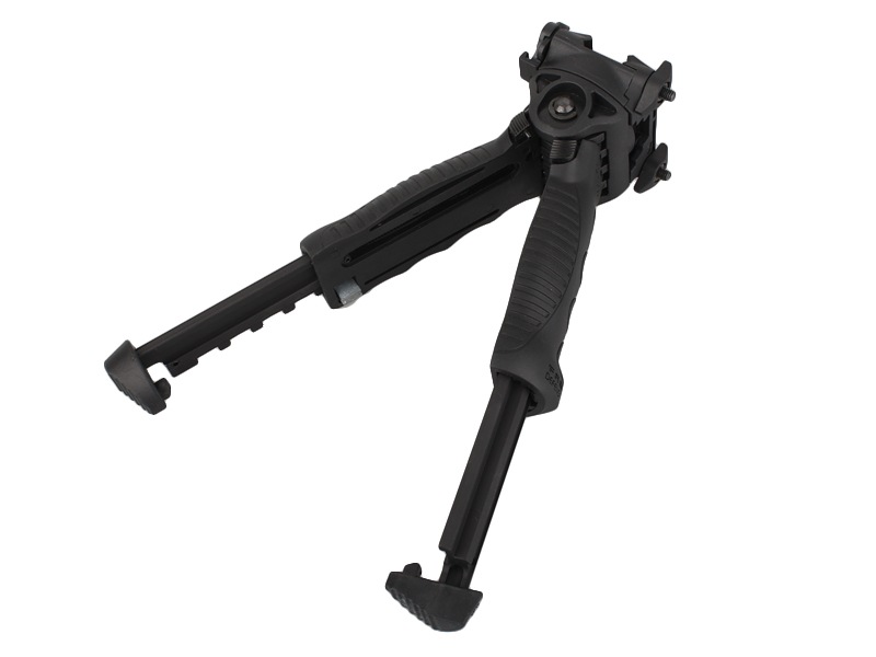 バイポッド/フォアグリップの2つの機能を持つファブディフェンスタイプ T-POD-G2タイプグリップバイポッドです。 プッシュボタンにより素早く容易にバイポッドへ変形させることが可能で5段階の長さ調整ができます。 バイポッド使用時、レール接続部の基部が一定角度回転することで、照準のスイッチングをスムーズに行うことが可能。