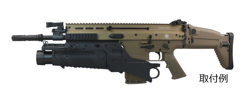 FN SCAR-L/Hアサルトライフルに対応したMk13 EGLMタイプグレネードランチャーです。 EGLMは、主に米国の精鋭部隊により運用され、殺傷/非殺傷/特殊用途40mmカートリッジなどオペレーションに応じて様々な展開ができます。 構造にはライフルのトリガー真下にランチャーのプルトリガーを配置する画期的な設計が取り入れられており、発射のスイッチングを快適に行うことが可能です。