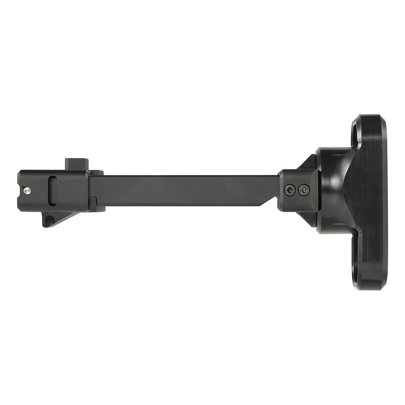 MP9/TP9(KWA/ASG)サブマシンガンに対応したリトラクタブルストックです。 素早く伸縮可能なB&Tタイプブレイスアダプターに、肩付けが容易なバットプレートを組み合わせることで安定した射撃が可能となります。