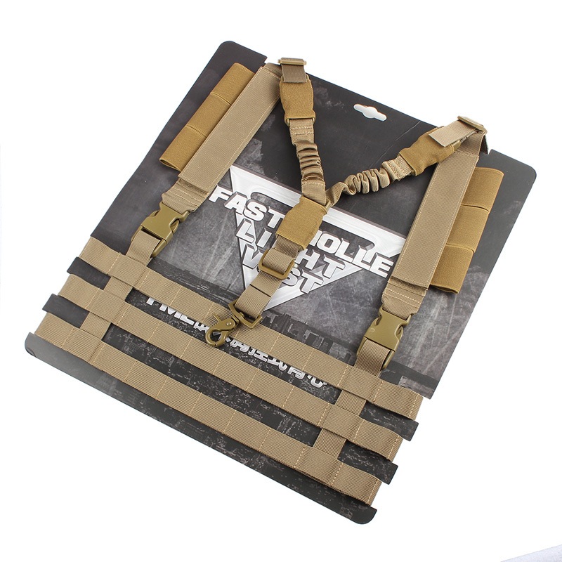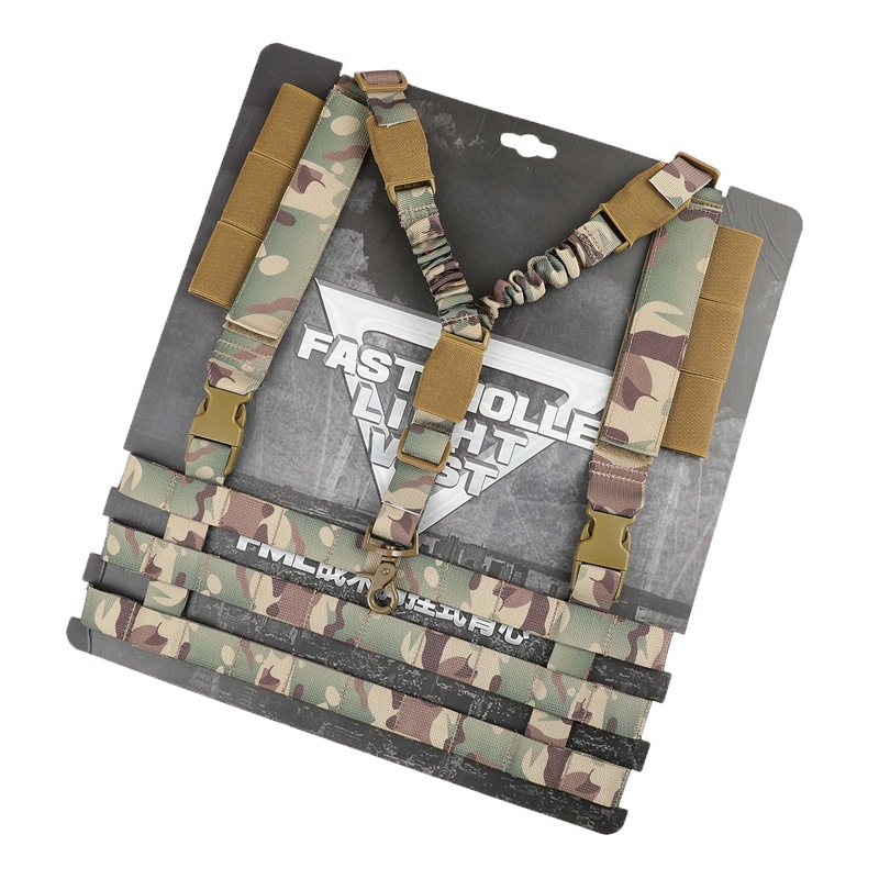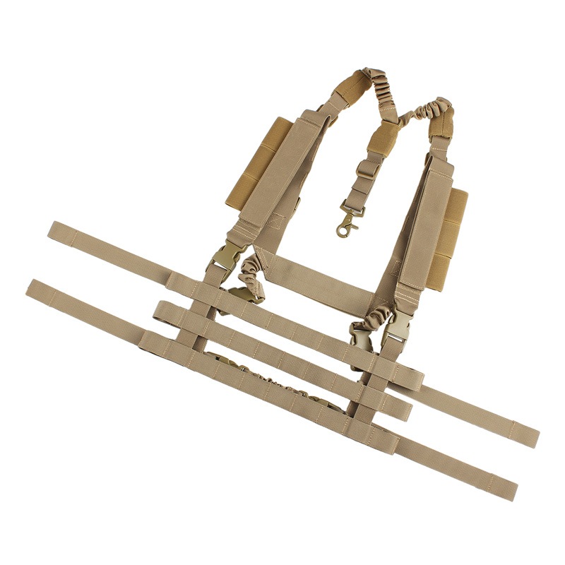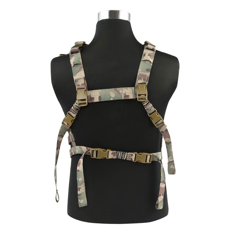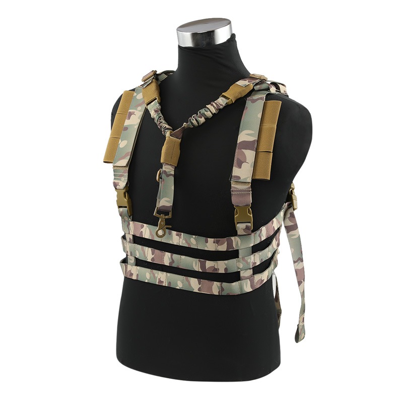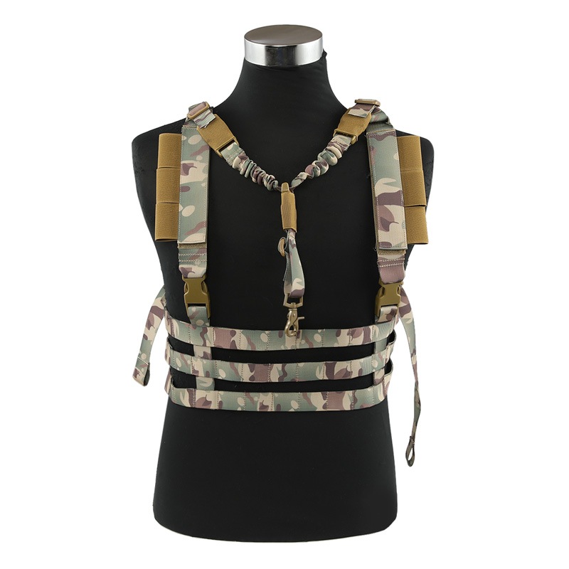 MOLLEウェビングとハーネスのみで構成された軽量チェストリグです。 フロントとサイド全面にMOLLEウェビングがあるため、マガジンポーチ、 ラジオポーチ、ユーティリティーポーチなど好みに応じて装備可能。