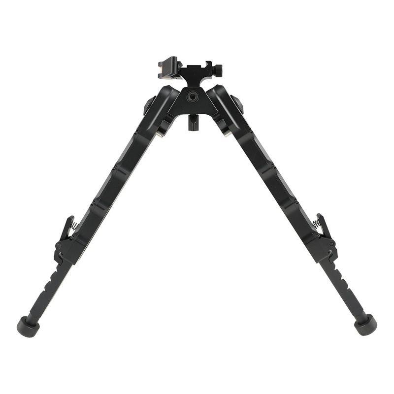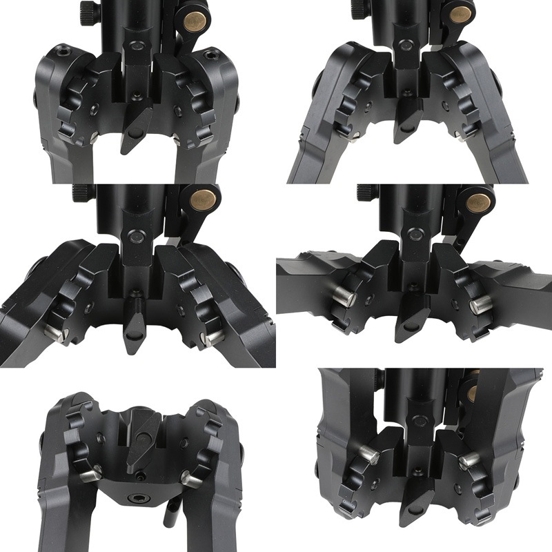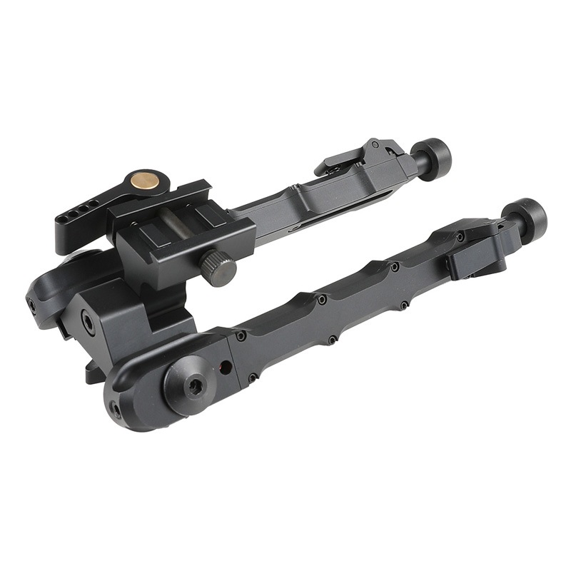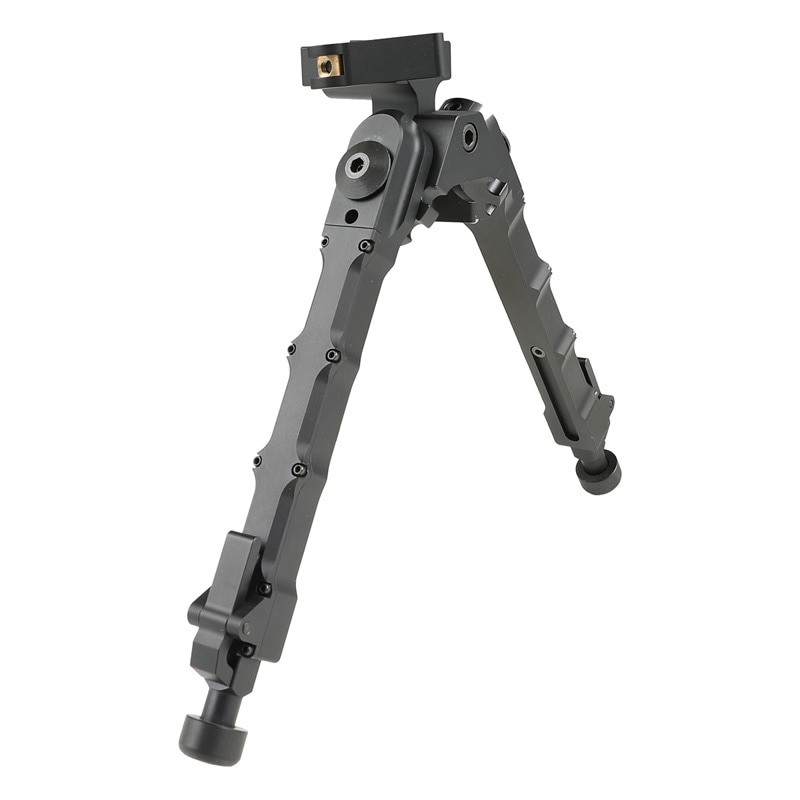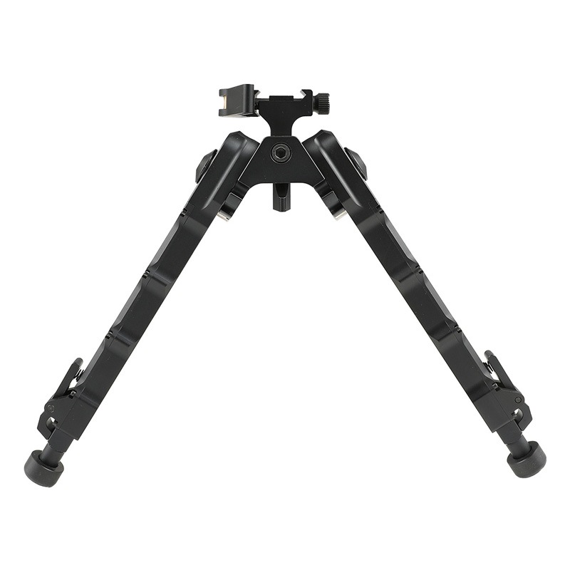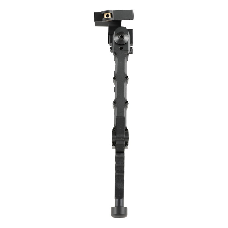 ボルトアクションライフルやアサルトライフルへの装着に最適なバイポッドです。 脚部分を下方に引くと、180度範囲を各45度、5段階(0、45、90、135、180度)で角度調整が可能で、環境に応じて安定した射撃をサポートします。 QDタイプなのでツールレスで20mmレールに取り付けられる簡単仕様で機種を選ばず取り付けることができます。