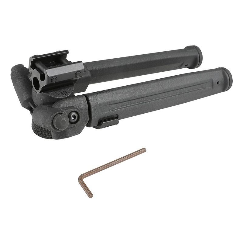 様々なシチュエーションにおいて活躍する、ピカティニー規格対応のマグプルタイプバイポッドです。 強度・軽量性・機能性に優れたエルゴノミックデザインで、使用する場合には素早く展開、 使用しない場合にはその内部にコンパクトに収納することができる、ワンハンド操作が可能な点も特徴となっています。