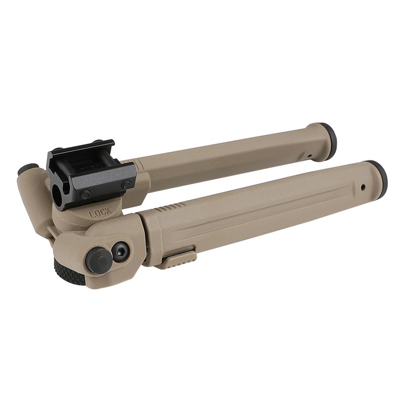 様々なシチュエーションにおいて活躍する、ピカティニー規格対応のマグプルタイプバイポッドです。 強度・軽量性・機能性に優れたエルゴノミックデザインで、使用する場合には素早く展開、 使用しない場合にはその内部にコンパクトに収納することができる、ワンハンド操作が可能な点も特徴となっています。
