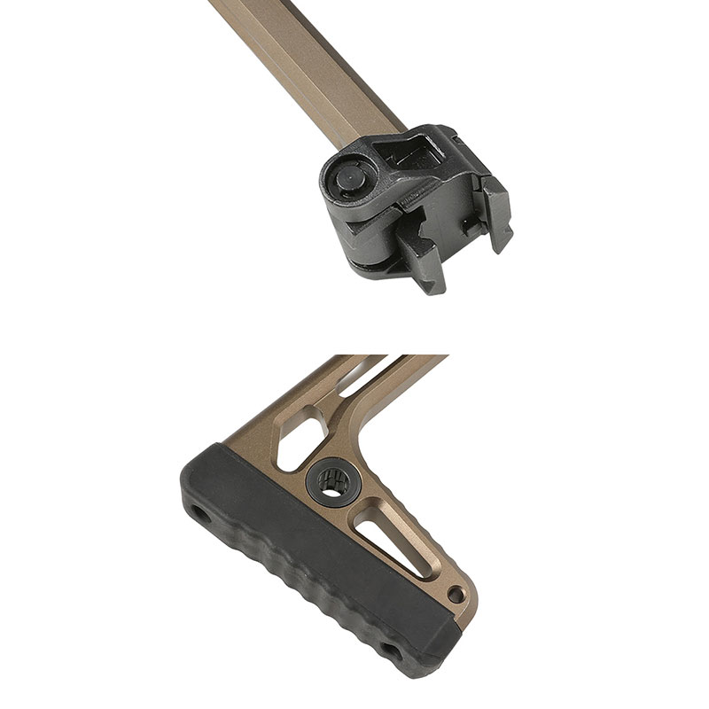 SIG AIRのLegacy/VIRTUS AEGに対応したMinimalisetタイプフォールディングストック。 機能性を追求し、展開時には安定した肩付けを、折り畳み時にはコンパクトに収納可能となっています。 MinimalistストックはThinタイプと比較して、基本的な性能はそのままに、さらにコンパクト性を追求した造りとなっています。