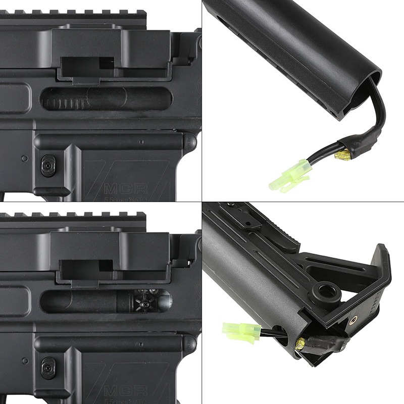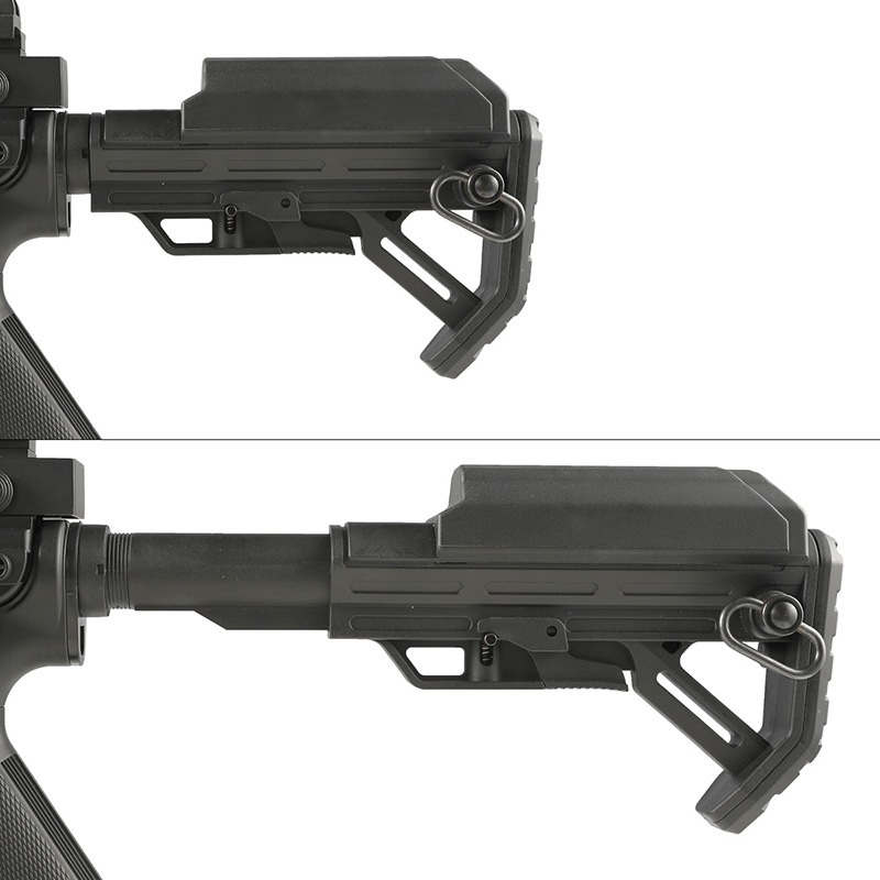 ストックはSI Viperタイプストックを搭載。 6ポジションで伸縮可能で、チークピースにバッテリーを収納することが可能となっています。