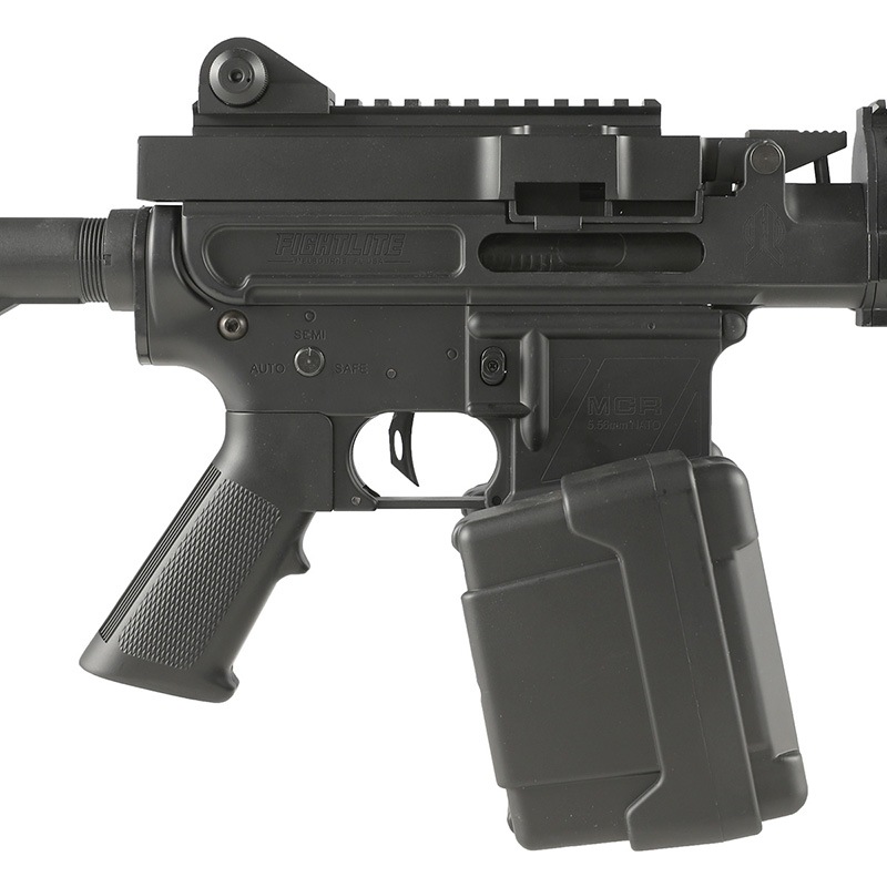 M4/AR-15のロアレシーバーをベースに、マガジン給弾、ベルト給弾式ボックスマガジンに対応させることが可能なアッパーキットが組み込まれたFightLite MCR(Mission Configurable Rifles)。 2種類のマガジンが使用可能なため、状況に応じた発射が可能となっており、機動力を重視する場合にはスタンダードマガジンを、 火力を発揮したい場合にはボックスマガジンの使用を選択することができます。
