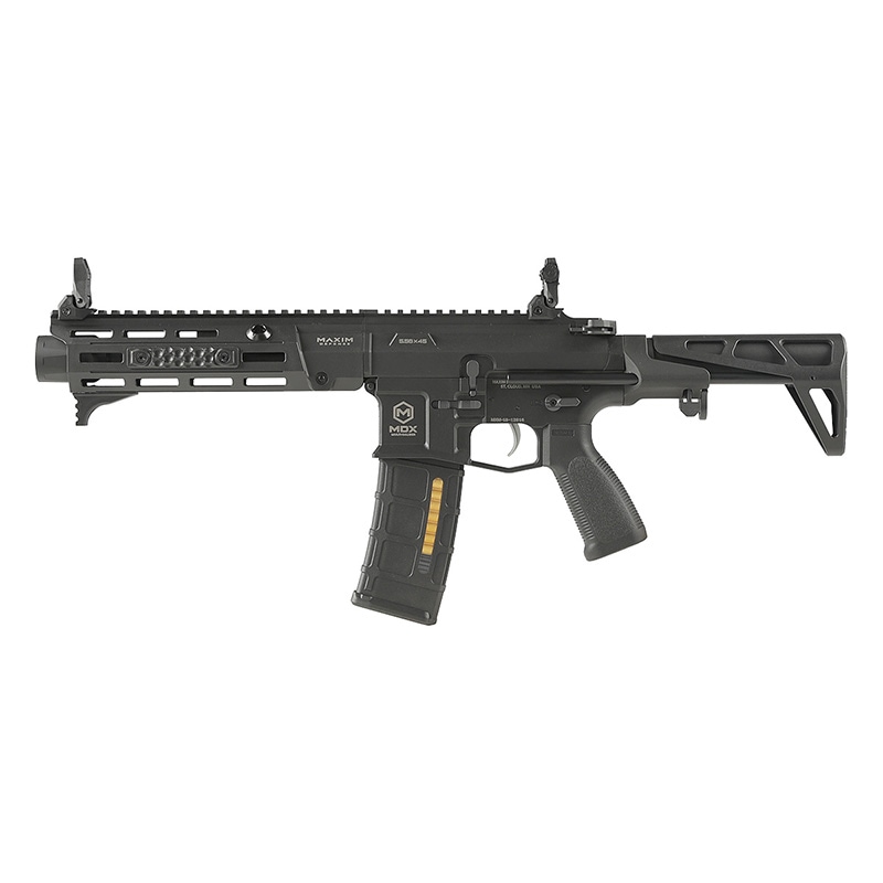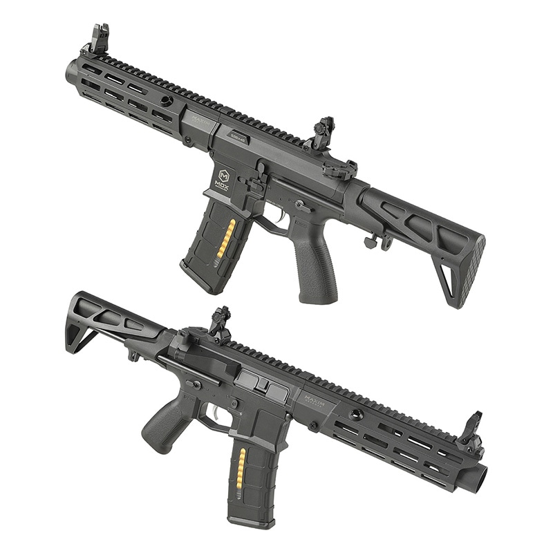 最新鋭のAR-15 PDWを生み出す米国のミネソタ州を拠点とするリーディングカンパニー、Maxim DefenseのMDX:508Cを DE Airsoft(ダブルイーグル)が電動ガンでモデルアップ。MDXは特に近接戦闘において最大限の戦闘力を発揮するデザインのPDXの コンセプトを踏襲しながら、8.5inchバレルにより更なる弾速と命中精度向上を目的としてサイズアップされた機種となっています。
