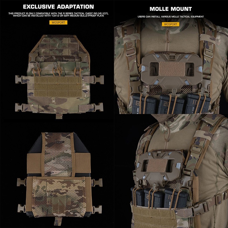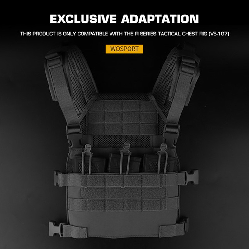 同社製のRアサルトタクティカルチェストリグと併用して使用することにより、チェストリグを薄型プレートキャリアとして運用することが可能になります。