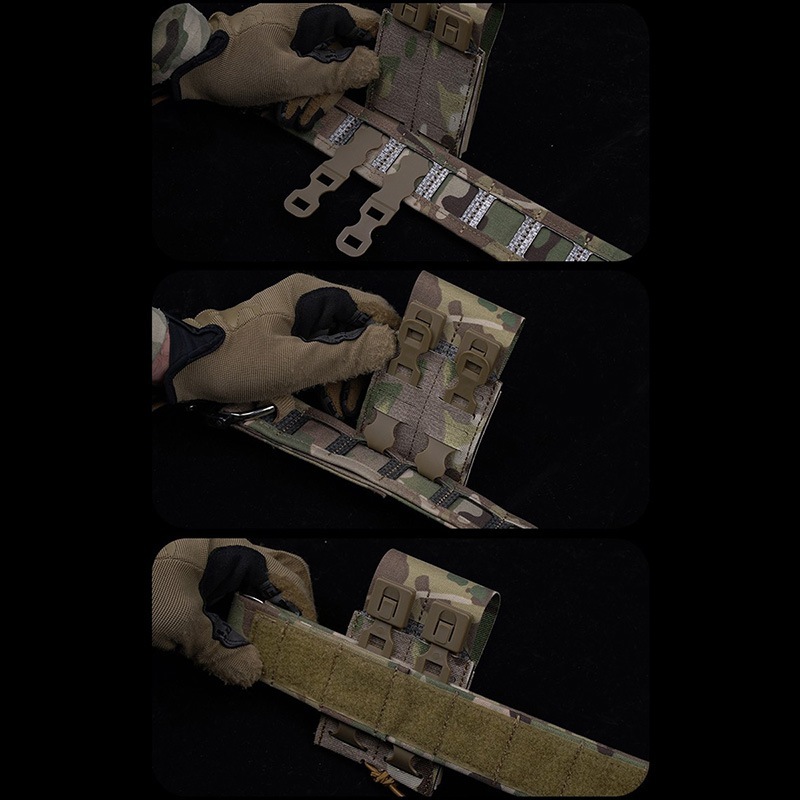 専用クリップにより、MOLLEシステムに対応したプレートキャリア、ベスト、ベルトに取り付けが可能です。