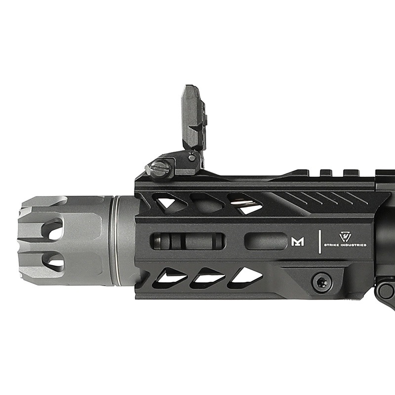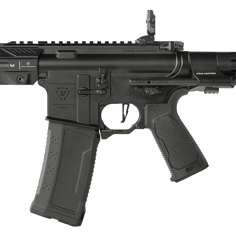 Strike Industries(ストライク・インダストリーズ)は、アメリカ・カリフォルニア州に拠点を置く実銃パーツメーカーで、2010年頃に熱心なシューターやエンジニアによって設立されました。主にAR-15、Glock、SIG、AKなどのプラットフォーム向けに、ストック、ハンドガード、コンペンセイター、チャージングハンドルなどのアクセサリーや内部パーツを開発・販売しています。革新性とコストパフォーマンスに優れた製品設計が特徴で、実用性を重視した設計思想とスピーディな製品開発に定評があります。ユーザーからのフィードバックを重視し、3DプリントやCNC加工を駆使して改良を重ねる姿勢も評価されており、米国内外の民間射撃ユーザーから高い支持を受けています。