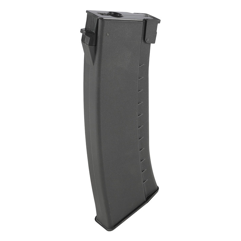 軽量かつ耐久性に優れたポリマー樹脂製ボディを採用したスプリング式マガジンです。実銃のAK74スタイルを模したリブ付きのデザインで、リアルな外観と優れた装弾性能を両立しています。