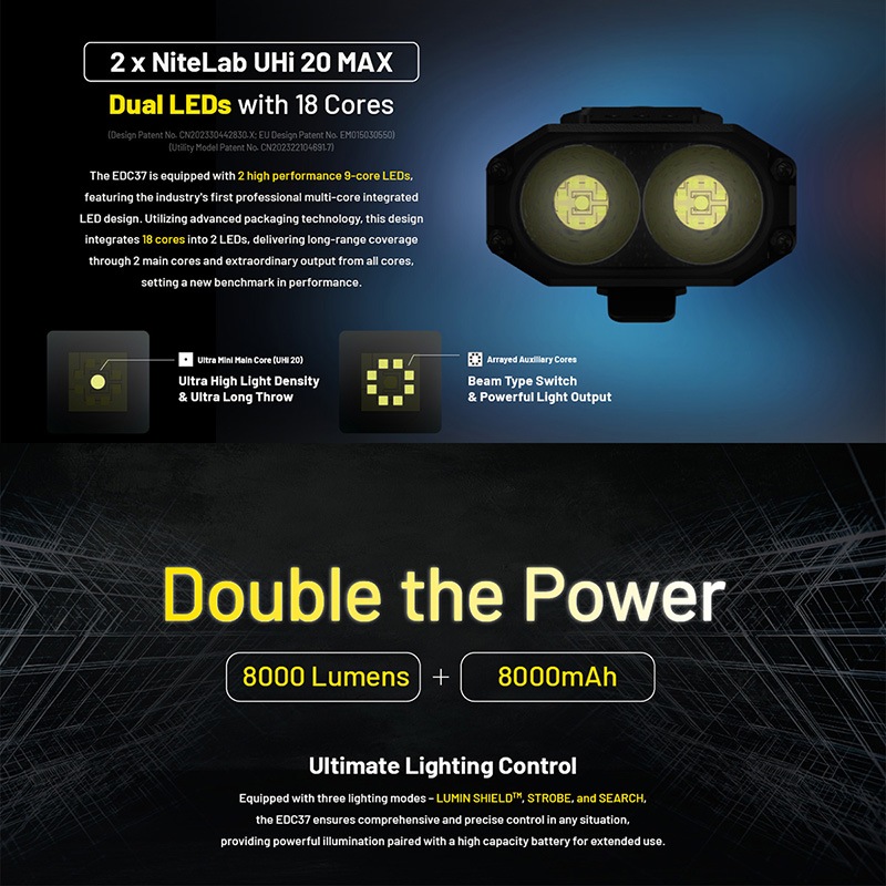 ・2×NiteLab UHi 20 MAX LED搭載、最大8000ルーメンのLUMIN SHIELD™出力