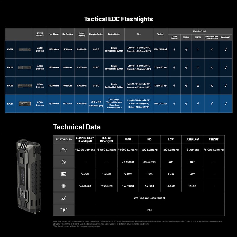 NITECORE(ナイトコア) EDC37 タクティカル フラッシュライト 最大8000ルーメン/420m照射 Type-C 充電 OLEDディスプレイ搭載
