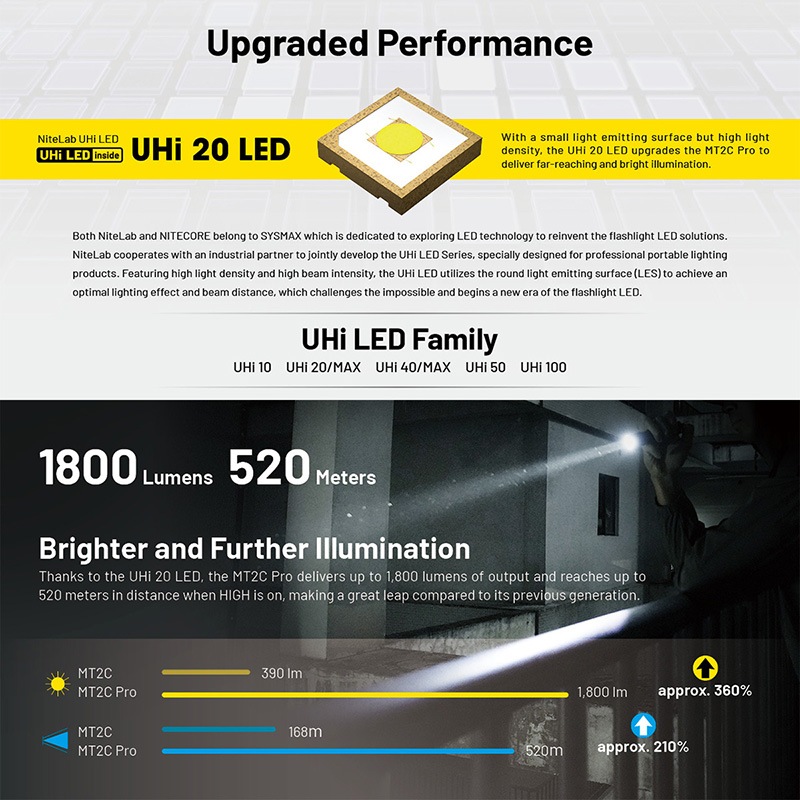 ・UHi 20 LED搭載、最大1800ルーメンの高出力