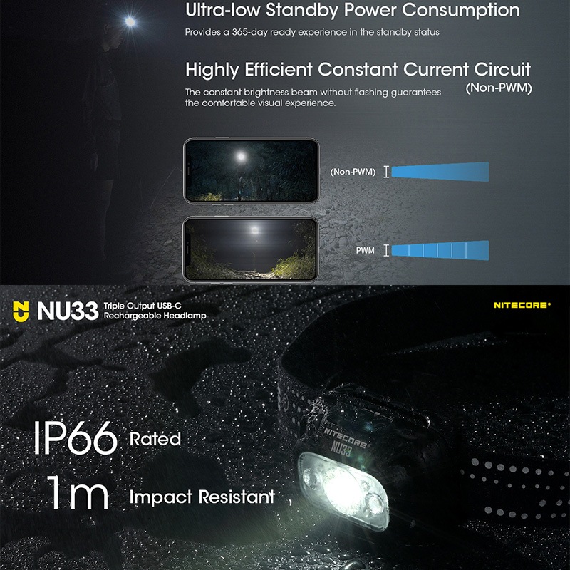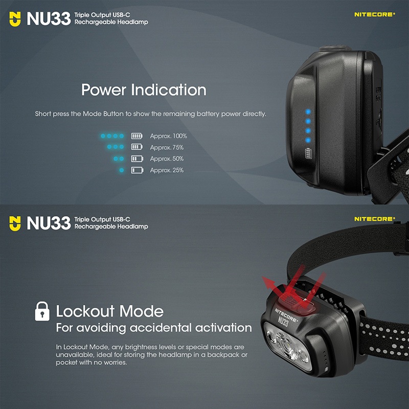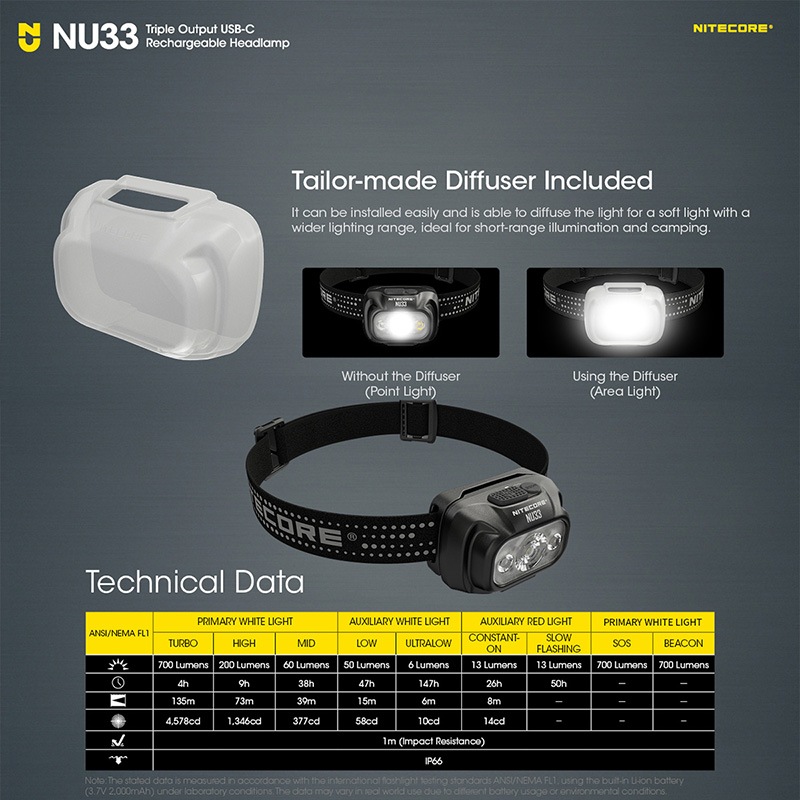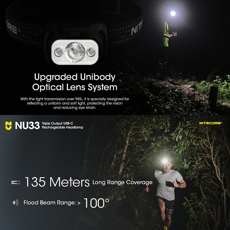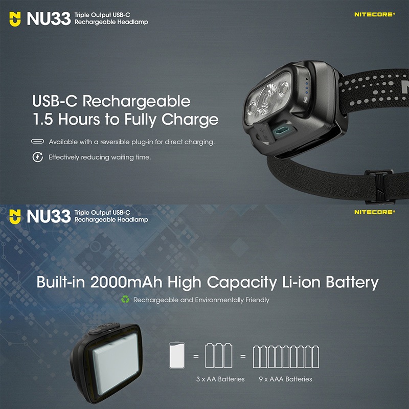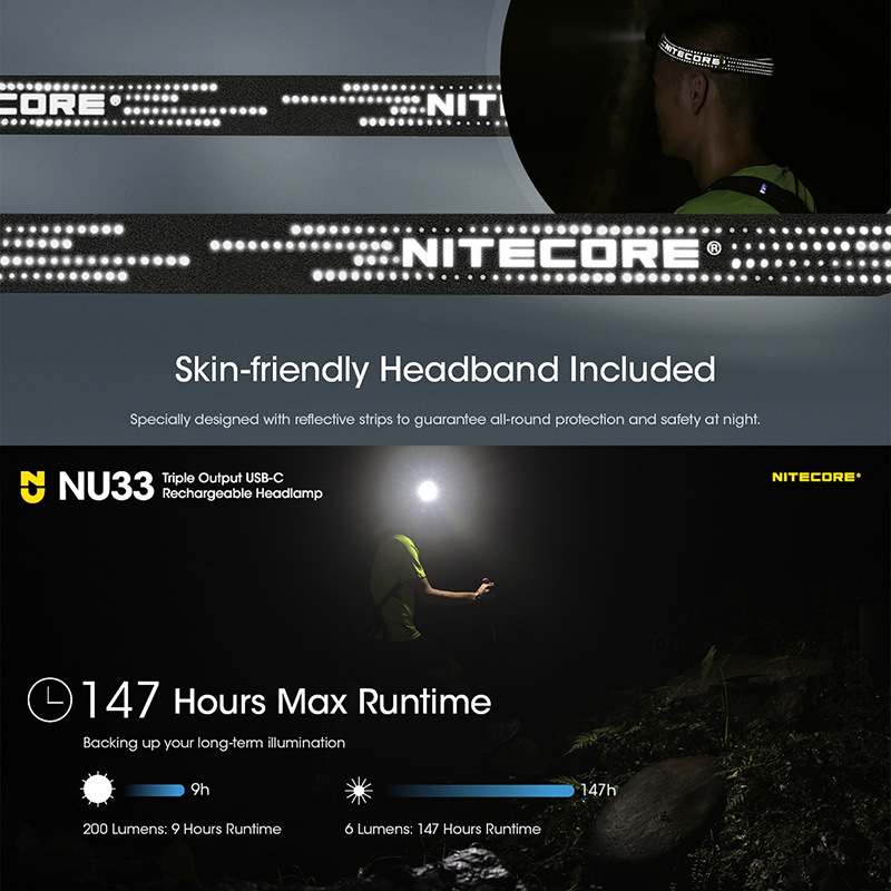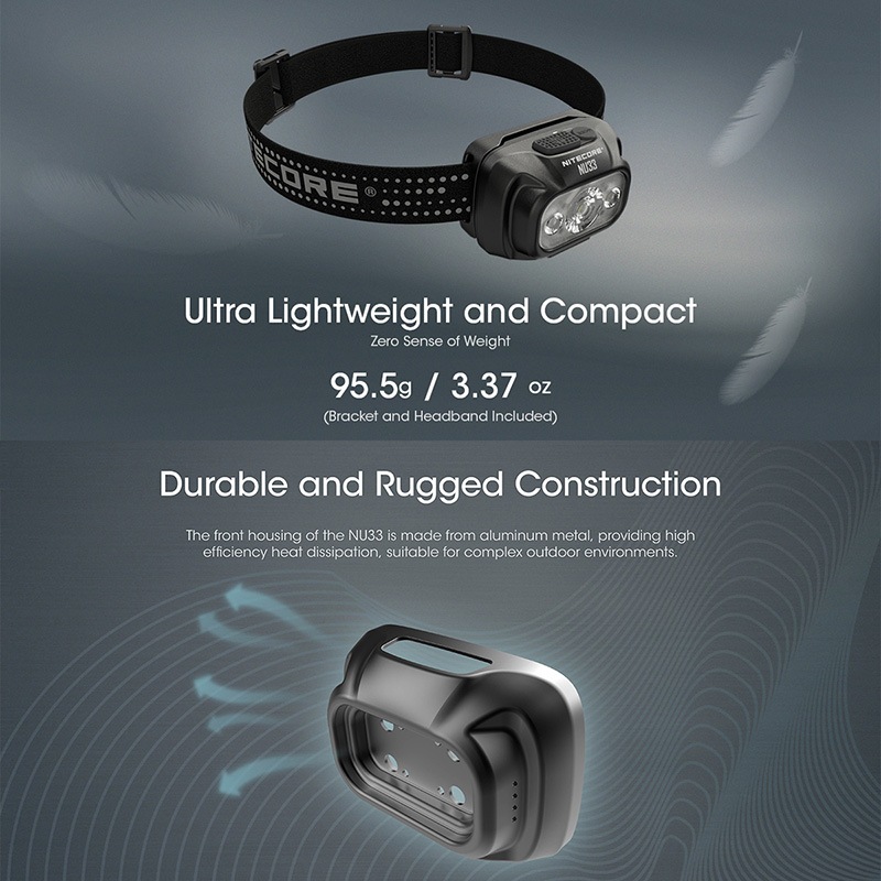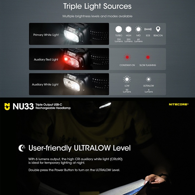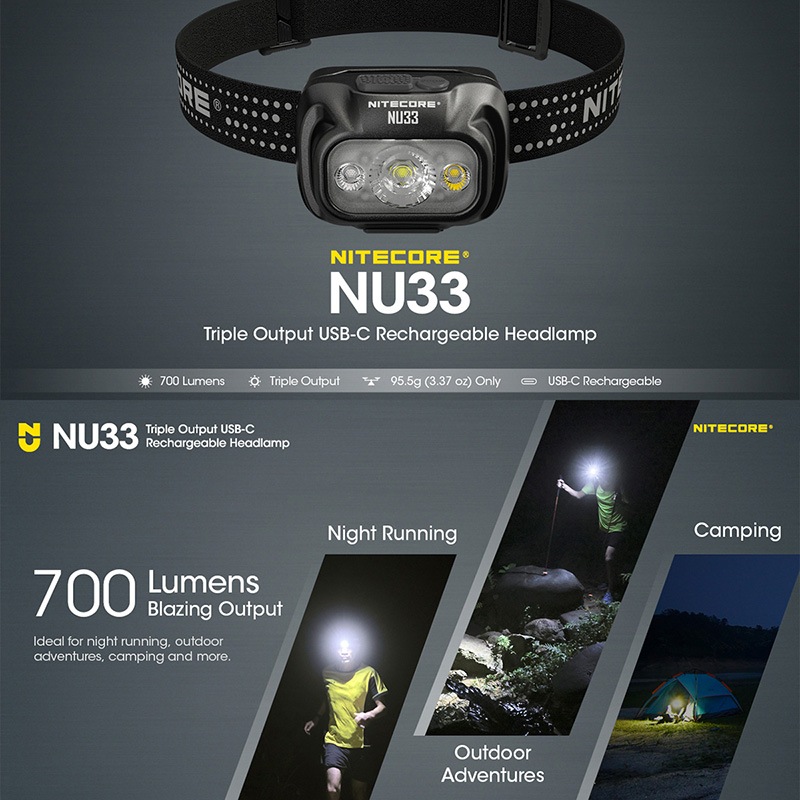 NITECORE(ナイトコア) NU33 アルミニウム合金製 超軽量 ヘッドライト Black 最大700ルーメン/135m照射 Type-C 充電