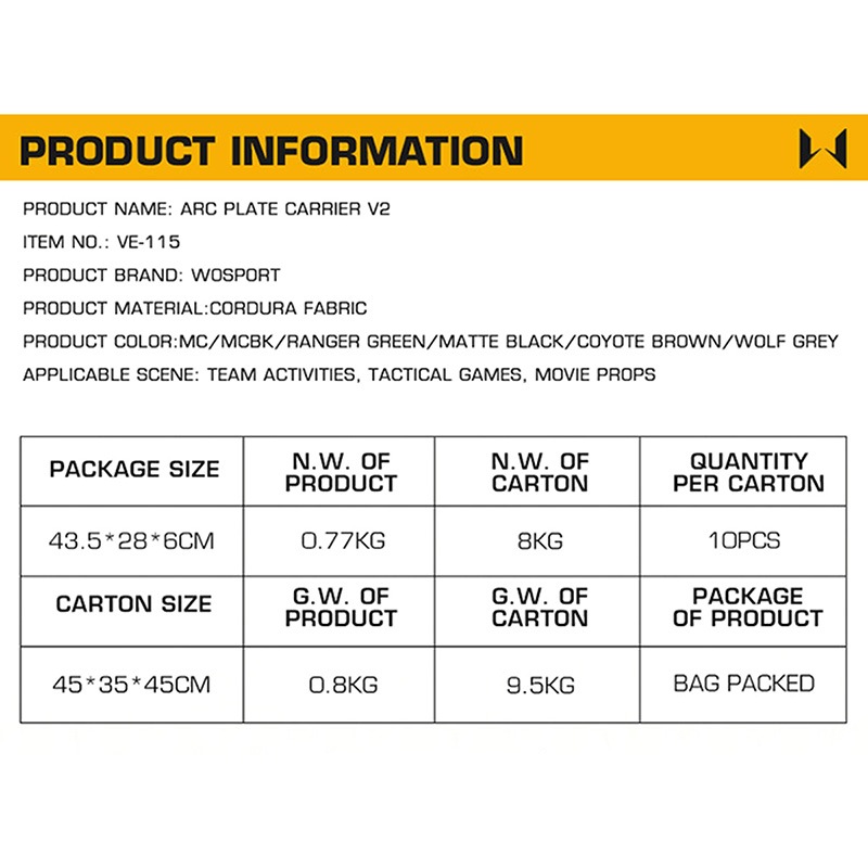 WoSporT ARC Design プレートキャリア V2 MOLLE Black