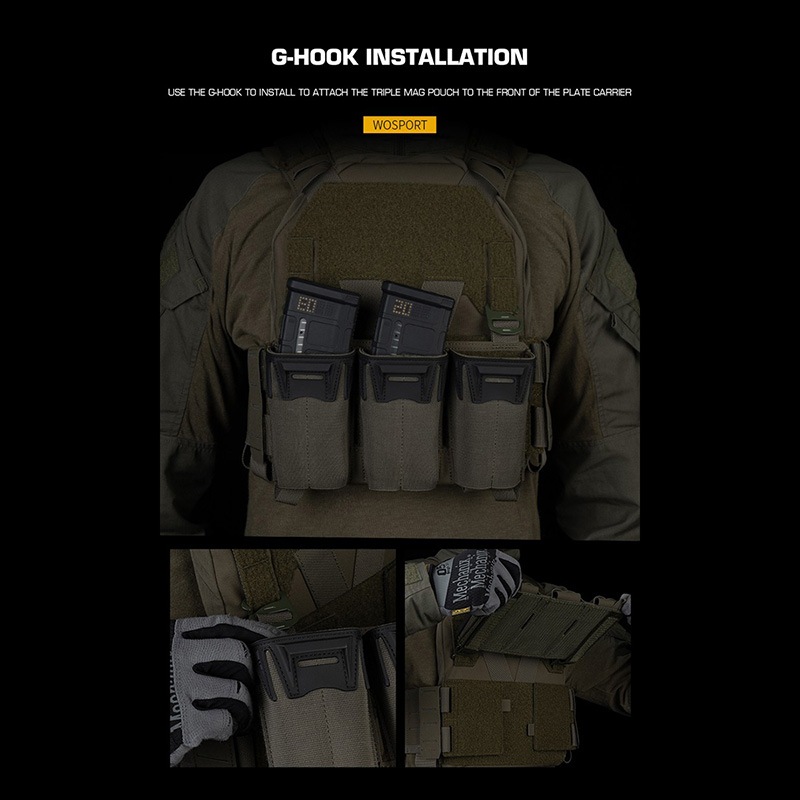 ・フロント:Gフック固定式トリプルマガジンポーチ