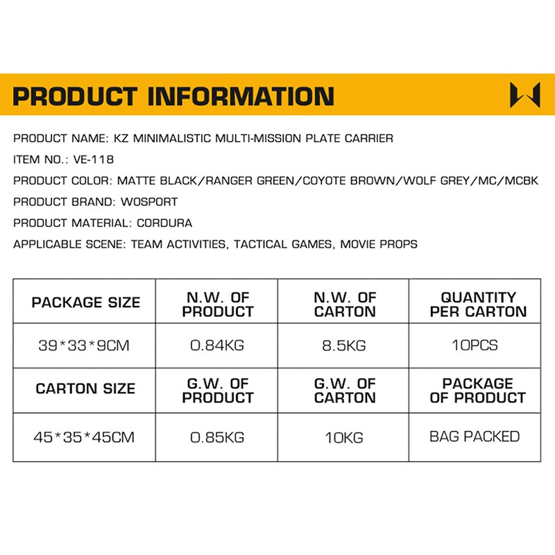 WoSporT製 ミニマル設計の軽量プレートキャリアです。