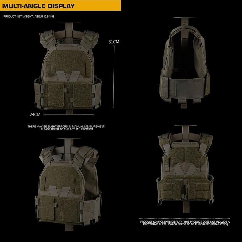 10×12インチまたはSAPIミディアムサイズ相当のダミープレートに対応(※プレート別売)。リアリティある装備構築にも適しています。